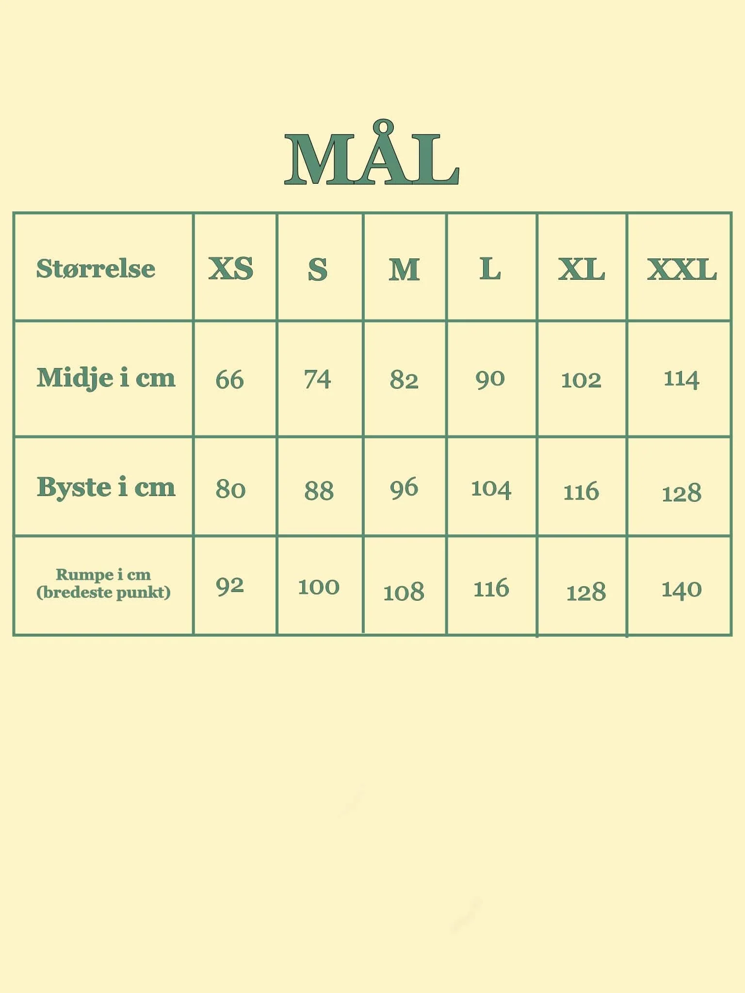 Størrelsesguide Dianas Vintage